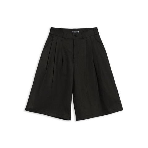 RAW DENIM SHORTS WITH THREE FRONT PLEATS